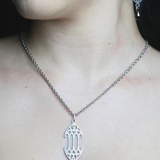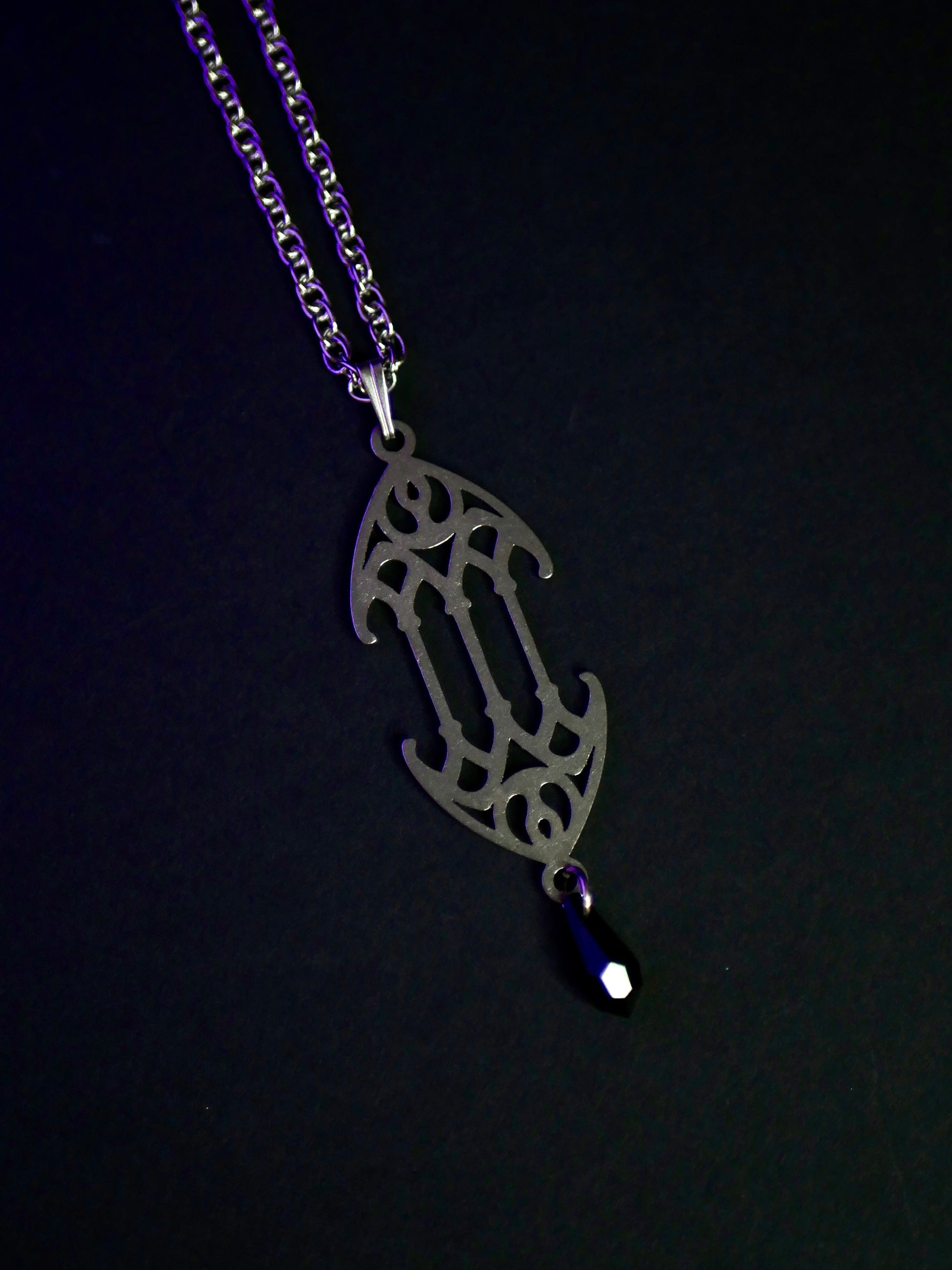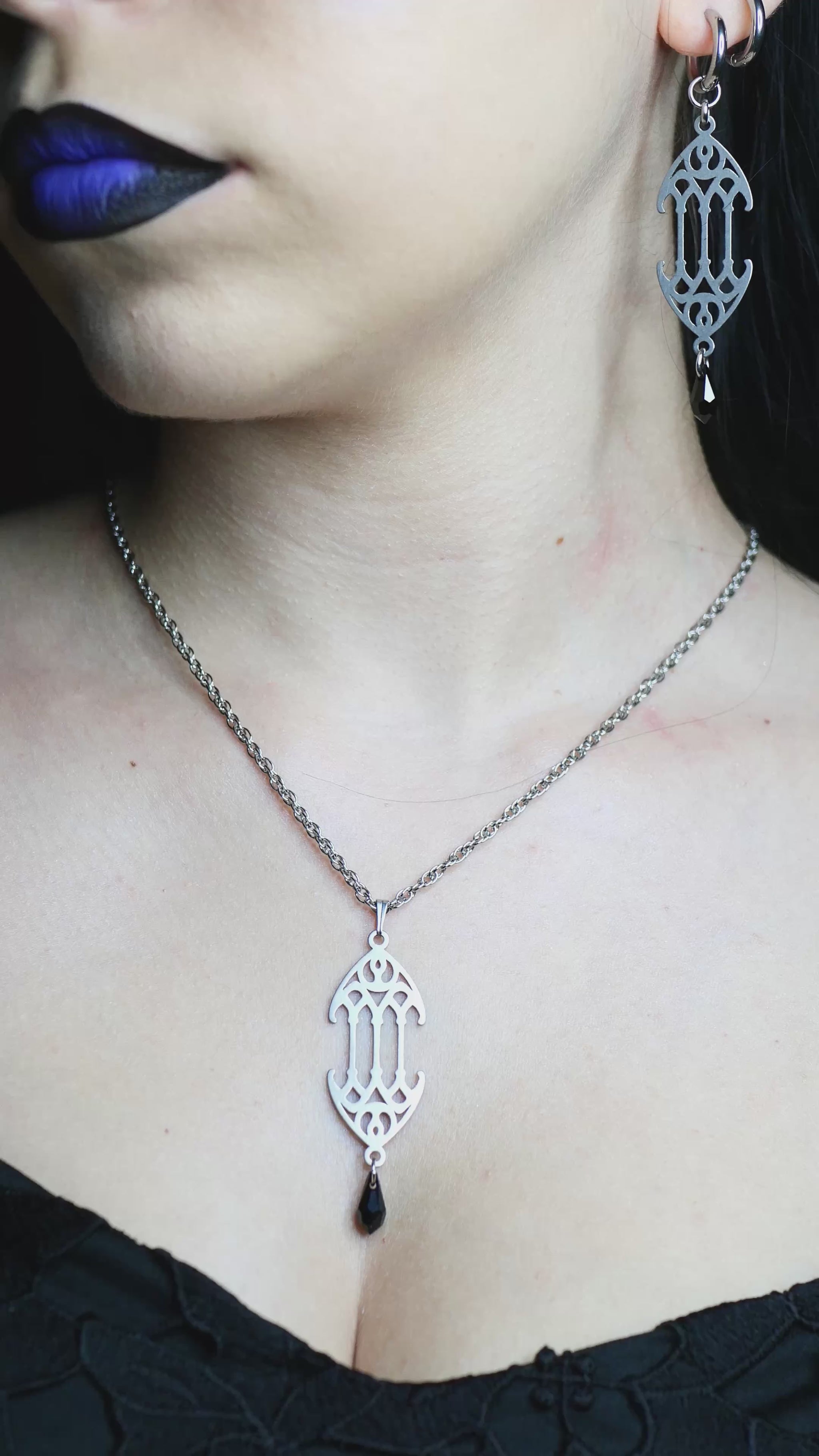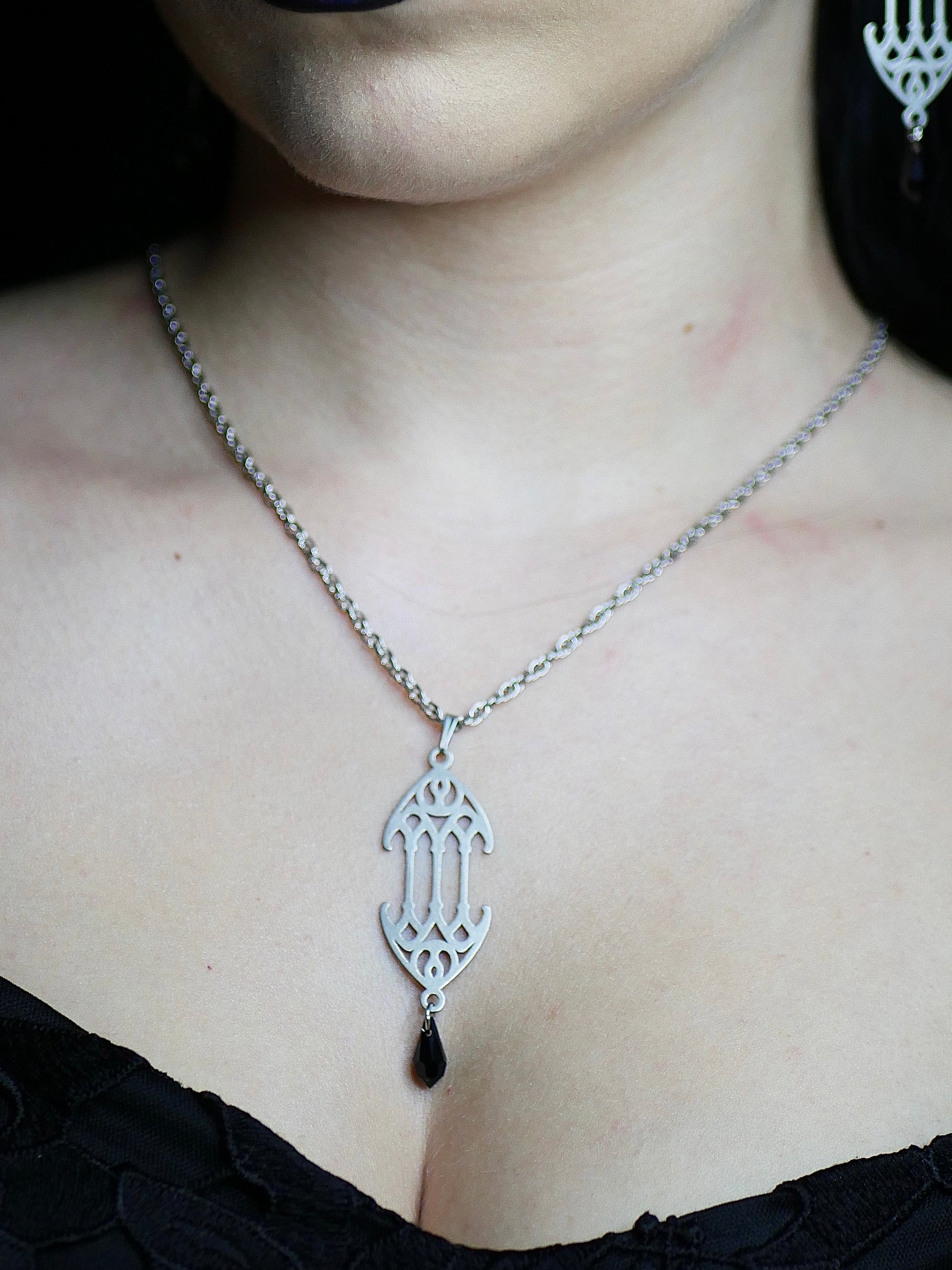 Une belle chaîne orné d’un pendentif vitrail et d'une perle noir en cristal.
