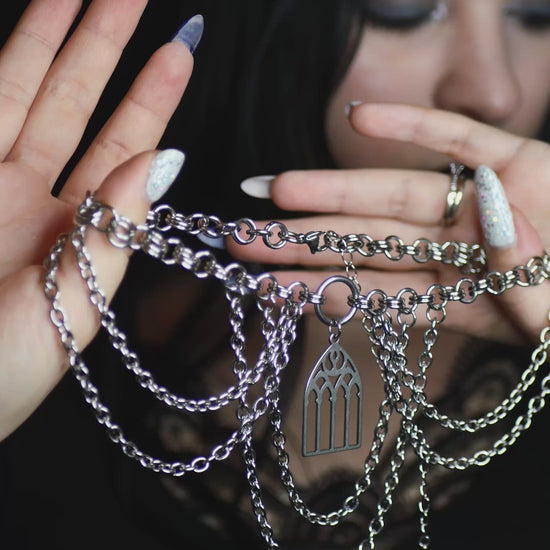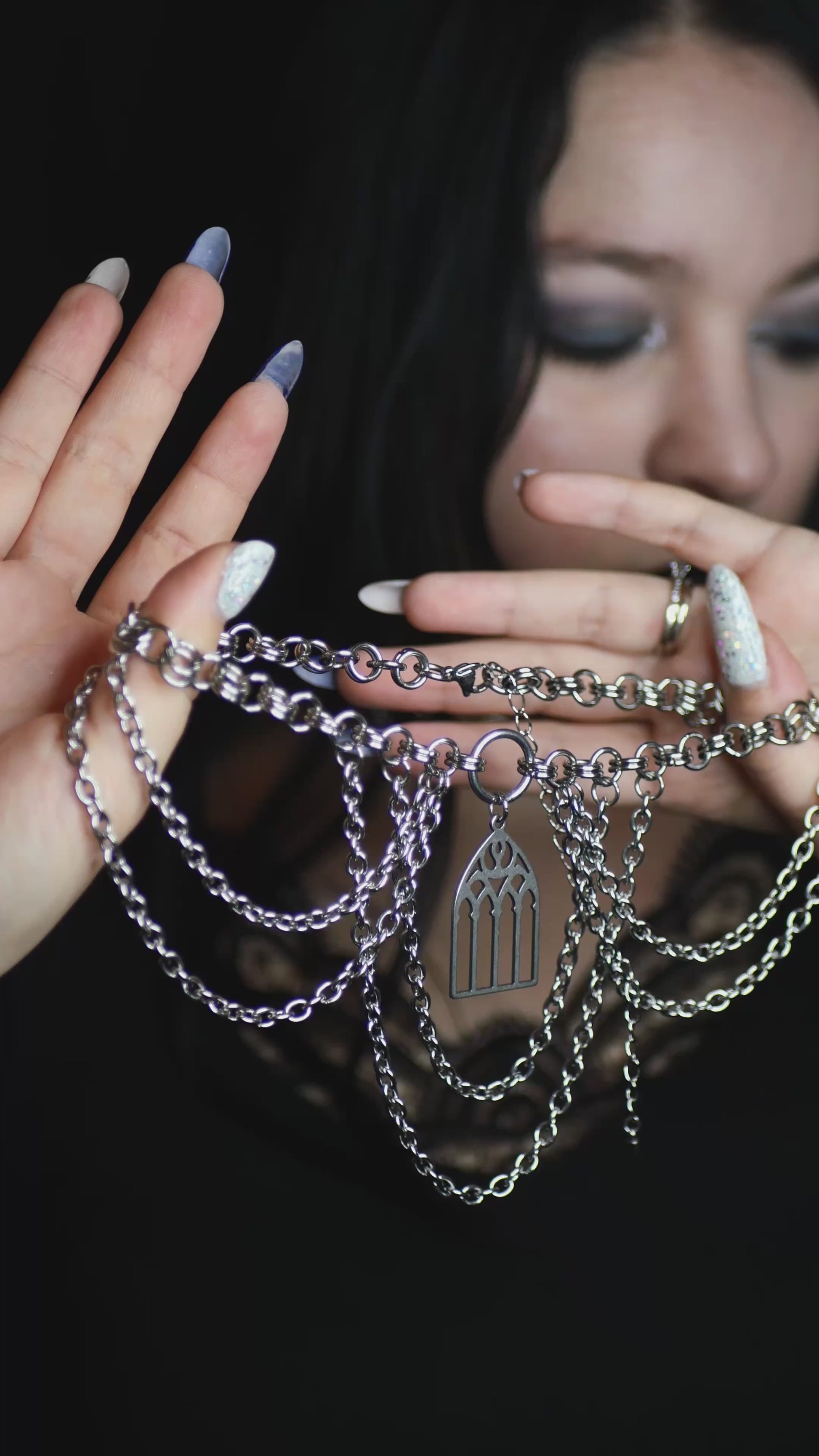 Ses chaînes tombantes créent un effet drapé raffiné, parfait pour marquer une tenue avec caractère.