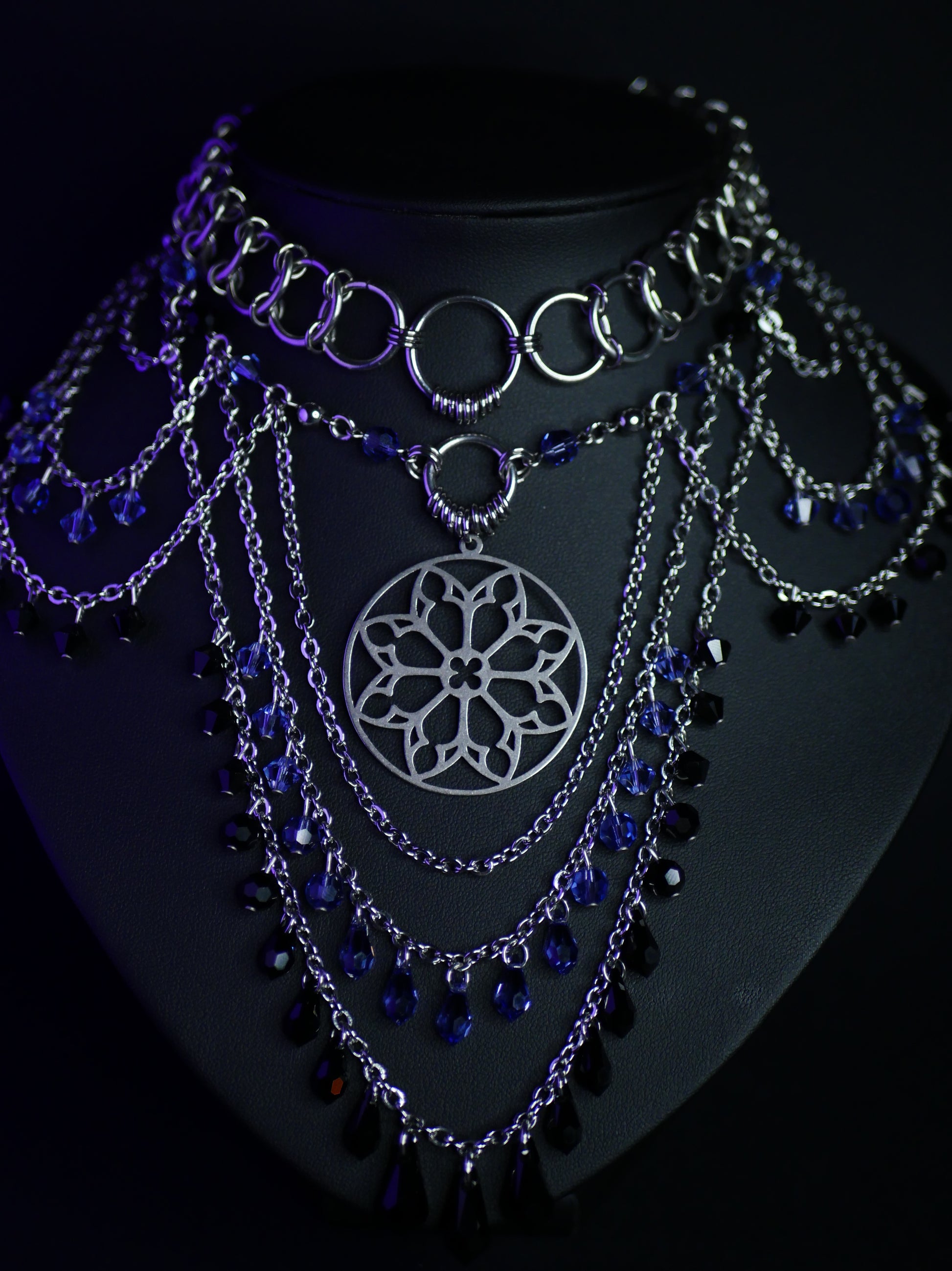 Ce collier est ma plus grosse création. Il est en 2 parties, le chocker peut se porter seul.